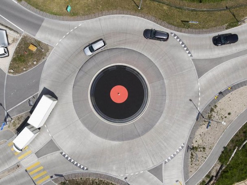 Bir dronun çektiği bu fotoğraflarda, devasa bir döner tabla şeklinde olan İsviçre'deki Lyss'in kavşağını görüyoruz. Aynı zamanda "KUFA-Kreisel" olarak da bilinir - bölgedeki konser alanından sonra, Bern inşaat mühendisliği departmanı tarafından, Kufa reklamlarının işbirliği ile yapılmıştır. 12 metre çapındadır, "üzerine yerleştirilmiş vinil disk" ise 10 metredir.