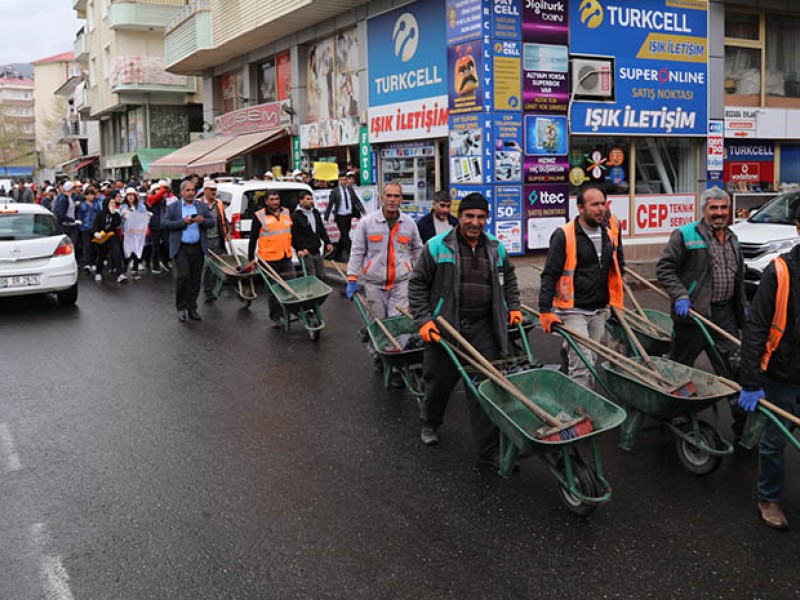 Bingöl Belediyesi Temizlik İşleri Müdürlüğü personeli ile Selahaddin Eyyubi Anadolu İmam Hatip Lisesi ve özel bir okuldan 60 öğrencinin katılımıyla gerçekleştirilen etkinlik kapsamında çarşı merkezinde çevre temizliği yapıldı.